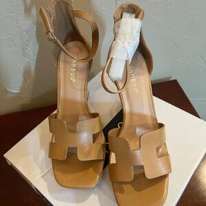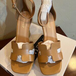 NEW Women's Bamboo Tan Strappy Wedge Heel Open Toed Heel - 6.5