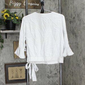 NEW Womens Bell Sleeve Tie Front Blouse Shirt Top White Lurex See Measurements
