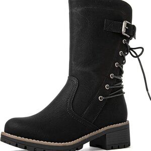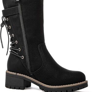NEW! Women's Biker Boots Lace up Back Mid Calf Motorcycle Fashion Festival Boots