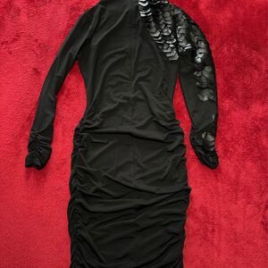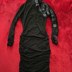 NEW Women’s Black Body-Con Faux Leather Scale Long Sleeve Dress