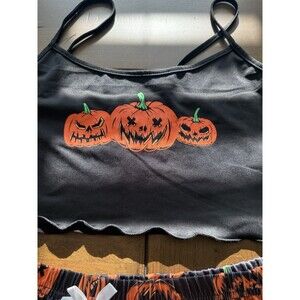 NEW, Women’s Black & Orange Pumpkin Print Cami Top & Shorts Set (M)