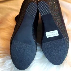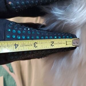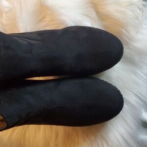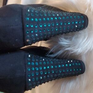 Wedge Ankle Boots. Suede Like with green Rhinestones on heel.