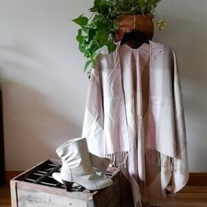 NEW Women's Cottagecore Flowy Boho Coquette Ivory Pink Buffalo Plaid Poncho