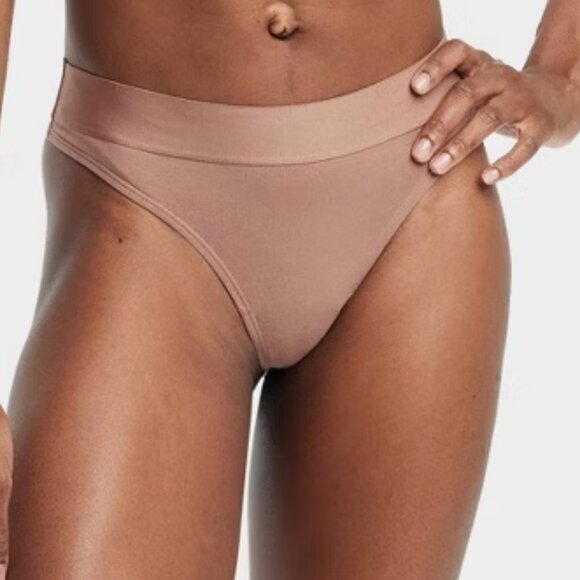 NEW Women's Cotton Stretch Thong with Elastic Waist - Auden™ Brown Large