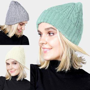 NEW Women's Cozy Warm Cable Knit Cuffed Classic Beanie Hat Mint, Gray, Ivory 1pc