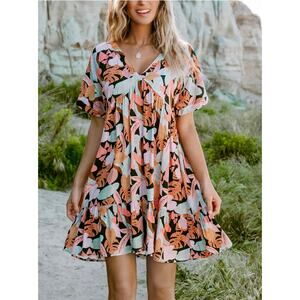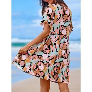 NEW Womens Cupshe Soft Tropics Short Sleeve Mini Dress Beach Vacation Floral M