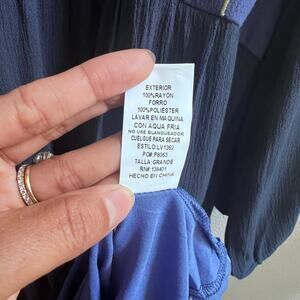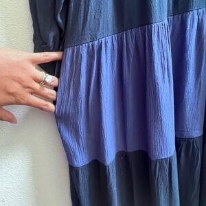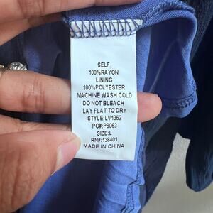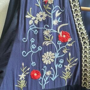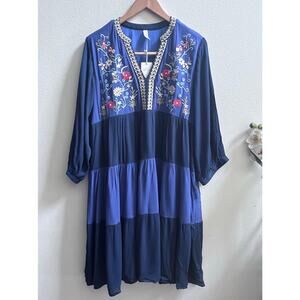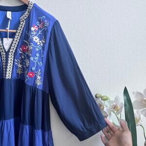 NEW Womens Floral V-Neck Embroidery Bohemian Flowy Love Blue Dress Long Sleeve L