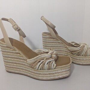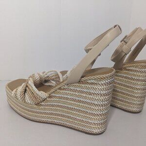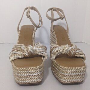 NEW- Womens Gianni Bini Platform Wedge Sandals Fabric Ankle Strap Beige