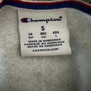 You're viewing a brand new women's gray Champion logo sweatshirt in size small. This stylish and comfortable sweatshirt is perfect for everyday wear or workouts. It features the iconic Champion logo prominently displayed.