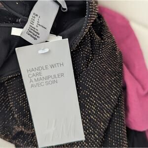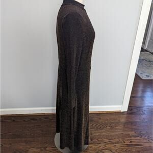 NEW Women's H&M Black Gold A-Line Midi Dress Cocktail Size Large Stretchy Mesh