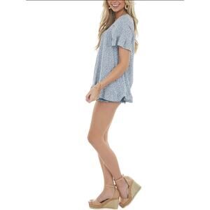 NEW Women's Large Square Neck Floral Knit Top Grayish Blue