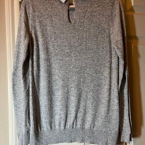 NEW Women's Loft Gray Sweater with White Rhinestone Faux Collar - Medium