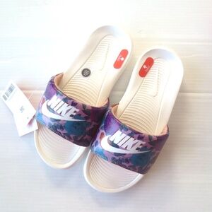 NEW Women's Nike Logo Print flowers Slipper Slides Sandals Floral 10