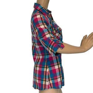 NEW Women's Passport Multicolor Plaid Shirt, Size M, Long Sleeve, Breast Pockets