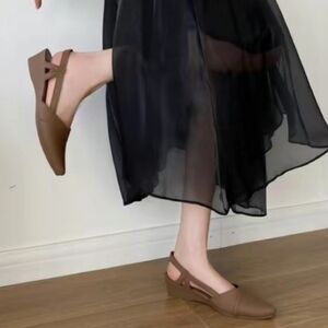 Questions? Leave a comment below!Women Non-slip Point Toe Slingback Wedge Shoes, Elegant Brown PVC Court Wedges