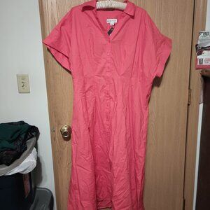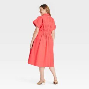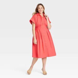 NEW Women's Short Sleeve Pleated Midi Shirtdress - Ava & Viv™ Coral Red XXL