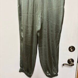NEW Women's Simply Vera Vera Wang Olive Shiny Pull On Pants. Elastic Leg Cuff. L