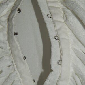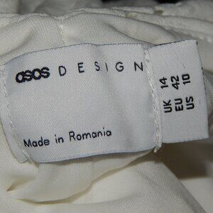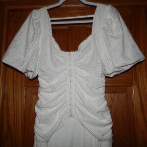 Up for purchase is a new women's size 10 ASOS Design white eyelet bridal shower or bachelorette party dress. It does not have the store tags but still has the hanging tag that states "Hey! Just so you know, we can't accept returns once this tag is removed." Features a hook and eye front closure with ruching accents and a high low hemline. Armpit to armpit measurement is 17-18 inches across depending on stretch. Overall length is 45 inches in the front and 53 inches in the back. Material content is 88% polyester and 12% elastane with a 100% polyester lining. All items come from a smoke free home. Please feel free to message with questions. Thanks for looking.