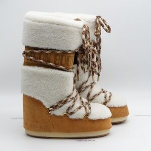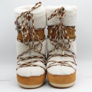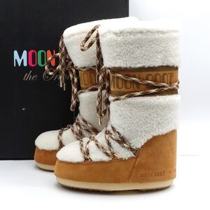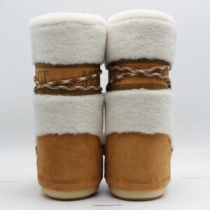 Women's Moon Boot Icon Shearling Insulated Suede Snow Boots 14026100-001 Whisky/Off White - New in box.