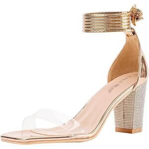 NEW Women's Size EU 41.5/US 11.5 Clear Open Toe Strappy Rhinestone Heels Sandals