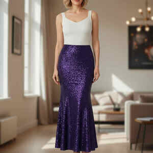 NEW Women's Stunning Purple Sequin Belly Dancer Gypsy Long Mermaid Bastet Skirt