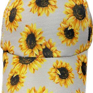NEW Women's Sunflower Print Ponytail Baseball Cap Hat
