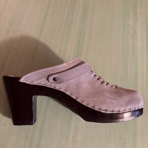 NEW Womens Sven No. 6 High Heel Light Blue Gray Suede Buckle Clogs 39 8.5 / 9