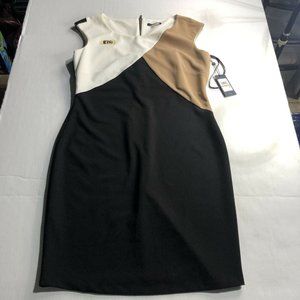 NEW Womens Tommy Hilfiger Sz 12 Neutral Tone Color Block Sleeveless Pencil Dress
