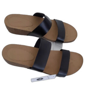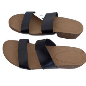 NEW Women's Universal Thread Black Faux Leather Slip On Sandals Size 11