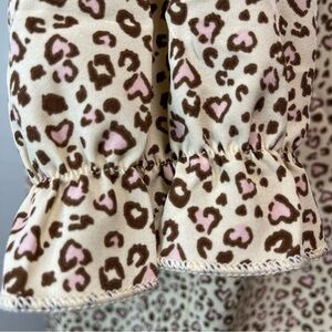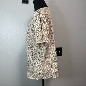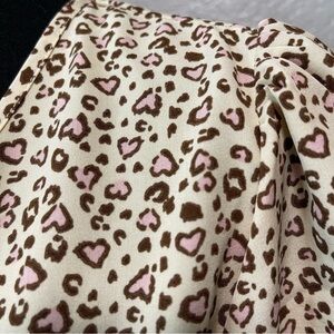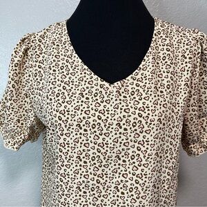 NEW Women’s VNeck Puff Sleeve Pink & Brown Heart Print Top Size Large