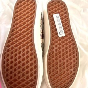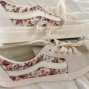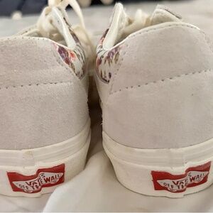Step out in style with these NEW vintage floral marshmallow Vans sneakers. The white suede upper material is complemented by a beautiful floral pattern.