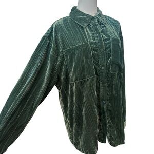 NEW Women's XL Green Crushed Velvet Soft Long Sleeve Casual Button-Up Top