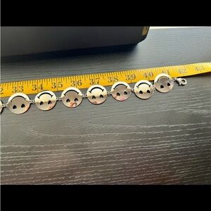 A metal hip belt featuring smiling heart eyes pendants on a lobster-clasp closure.