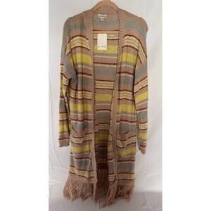 NEW Wonderly Womens Multi Color Long Cardigan Sweater Open Front Size XL Boho