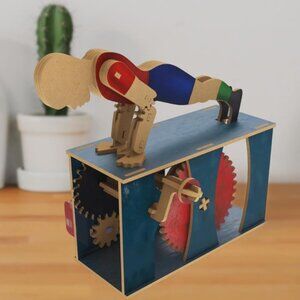 NEW Wooden DIY Model Kit Wooden Automata Automotron STEM Craft PUSH UP iló Gift