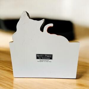 It measures 6.75"h x 7"w x 1"d. Just the purrfect size for a mantle or coffee table.