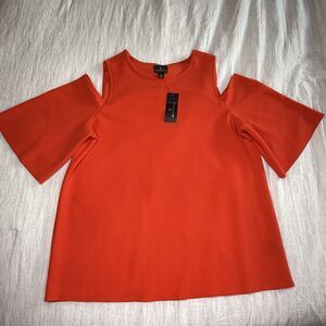 NEW Worthington Woman's Knit Blouse Orange Cold Shoulder 3/4 Sleeve Size Medium