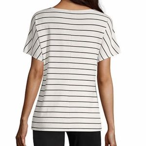 Cute Worthington white and black stripe top. Looks super cute with the belt tied in the back too!