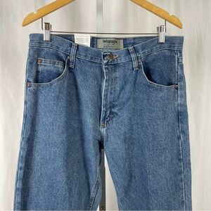 NEW Wrangler Mens 34 x 30 Regular Cotton Jeans Dark Wash Rugged Cowboy Workwear