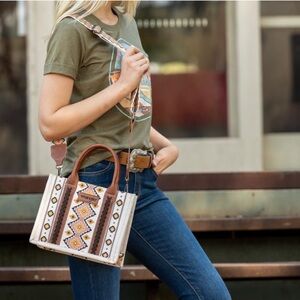 NEW Wrangler Mini Tote Brown Crossbody Purse Guitar Strap Western Aztec Handbag