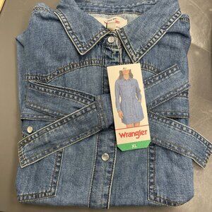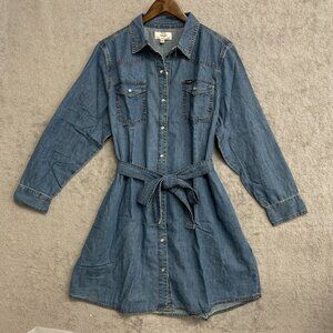 NEW Wrangler Women's XL Chambray Shirt Knee Dress Belted Long Sleeve Button up