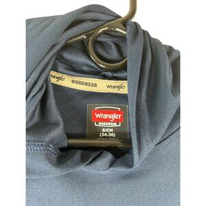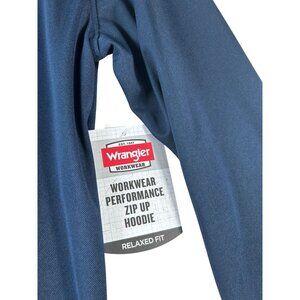 NWT navy blue Wrangler Workwear long sleeve hooded sun protection shirt, size Small 34-36. *Note, the tag on this is not correct description, this is not a zip up hoodie. The item # is WW65098 which is a Wrangler Workwear Men's Long Sleeve Sun Protection Hoodie. In excellent new condition.