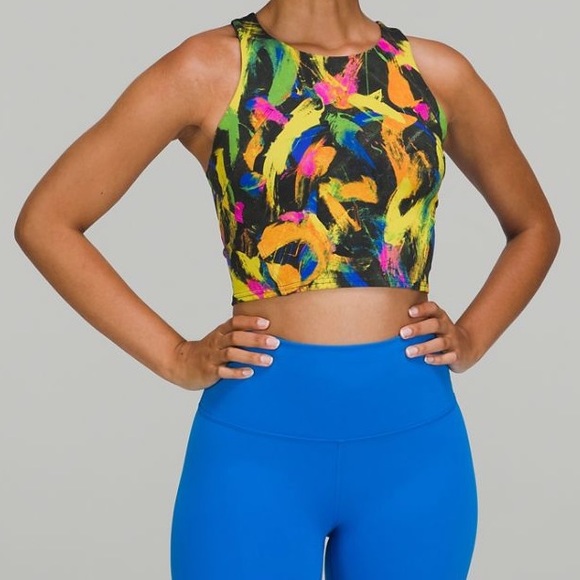 NEW Lululemon Wundertrain racerback tank in Undertone black multi with built in shelf bra and removable pads.
