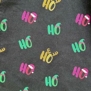 The print showcases "Ho Ho Ho" written all over it, adding a touch of whimsy to any outfit.