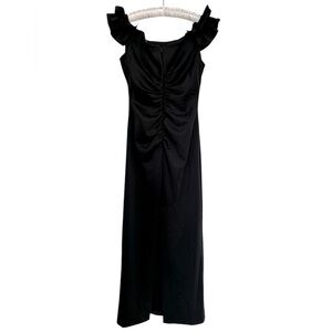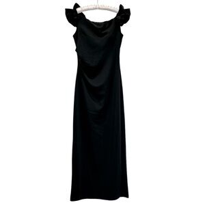 NEW X By XSCAPE Maggie Dress Black Off the Shoulder Formal Gown Ruffle Sleeve Detail Size 16