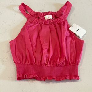 NEW XIRENA Lili Top Pink Sun Cropped Bubble Tank 100% Cotton Poplin Feminine XS