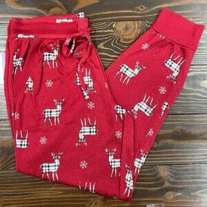 NEW XL 16-18 Women's Christmas Plaid Deer Sleep Joggers w/ Pockets