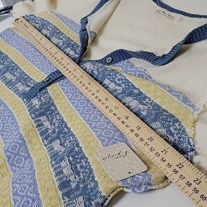 NEW XL FREE PEOPLE BLUE YELLOW CREAM NORDIC BUTTON SWEATER Apres Ski NWT
