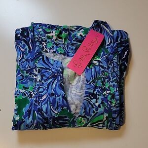NEW XL LILLY PULITZER 3/4 SLEEVE BLUE GREEN WHITE LONG DRESS EXTRA LARGE NWT