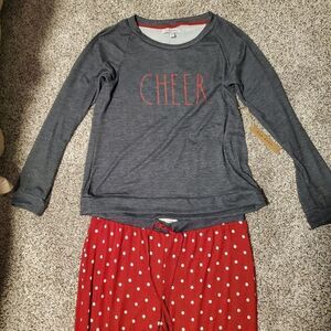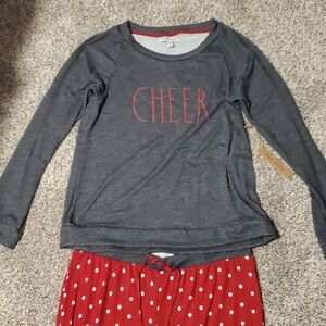 NEW XL RAE DUNN * CHEER * HOLIDAY CHRISTMAS DOT GRAY RED PAJAMAS SET EXTRA LARGE
